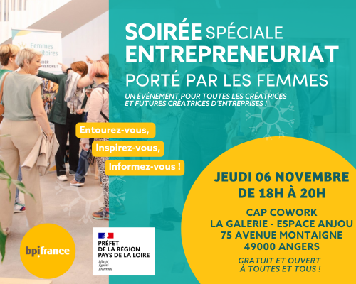 Le 6 novembre, Femmes des Territoires organise à Angers une soirée spéciale entrepreneuriat porté par les femmes. Avec le soutien de BPI et de la région Pays de la Loire.